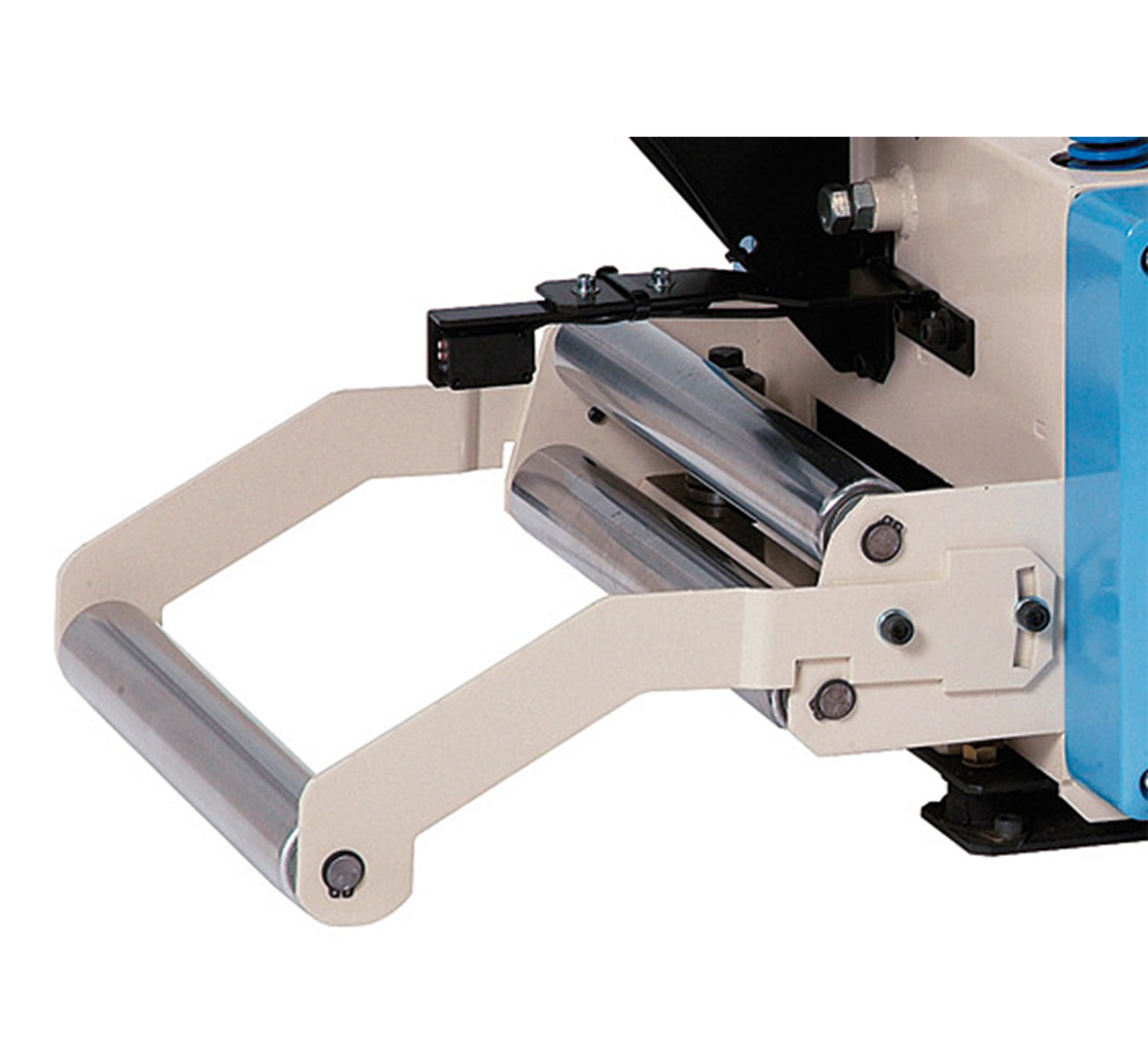 プレス機の反対側に製品を延長し、コイル材を支持するためのロールを追加します。
